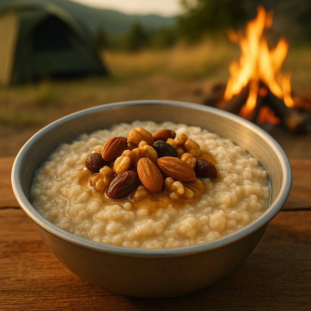 La avena es ideal en campamento: ligera de transportar, fácil de preparar y muy versátil. Su fibra ayuda a mantenerte saciado, mientras que los frutos secos añaden proteínas, grasas saludables y vitaminas. Un toque de miel o tu endulzante natural favorito completa el plato con energía rápida para arrancar el día con fuerza.